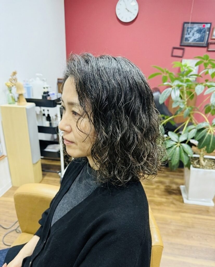 いざ全ての髪がくせ毛になり、スタイリング方法を覚えて日々を過ごしてもらうと、こっちの方が全然楽だと言っていただける事例が多くなってきました。